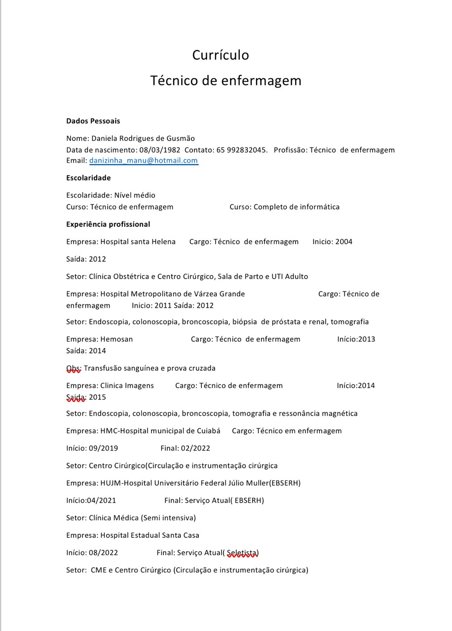 3 anos de experiência em centro cirúrgico e cme no Hospital Municipal de Cuiabá HMC