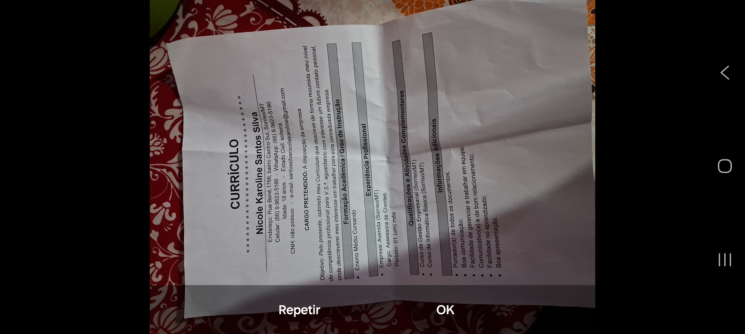 Nome da Mãe: Patrícia silva santos
